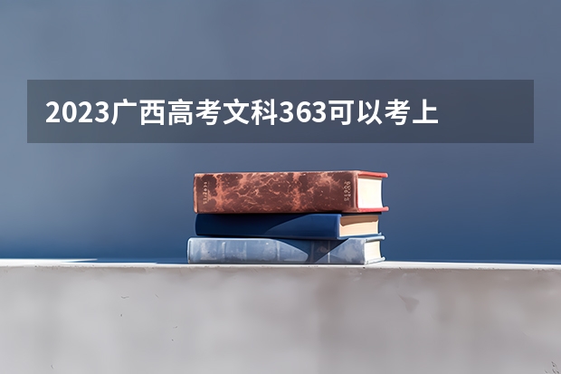 广西高考文科363可以上的大学具体名单有:郑州澍青医学高等专科学校、临汾职业技术学院、泰州职业技术学院、苏州农业职业技术学院、浙江机电职业技术学院、嘉兴职业技术学院、湖州职业技术学院、福建船政交通职业学院、江西工业职业技术学院、江西环境工程职业学院、漯河职业技术学院、周口职业技术学院、武汉船舶职业技术学院、恩施职业技术学院、湖北交通职业技术学院、荆州职业技术学院、武汉工程职业技术学院、随州职业技术学院、张家界航空工业职业技术学院、广东女子职业技术学院、广西机电职业技术学院、柳州职业技术学院、广西水利电力职业技术学院、广西交通职业技术学院、广西生态工程职业技术学院
